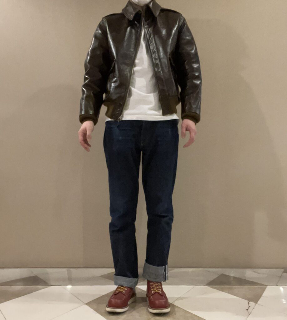 コーデ③:革ジャンとジーパン(インナーで使用)